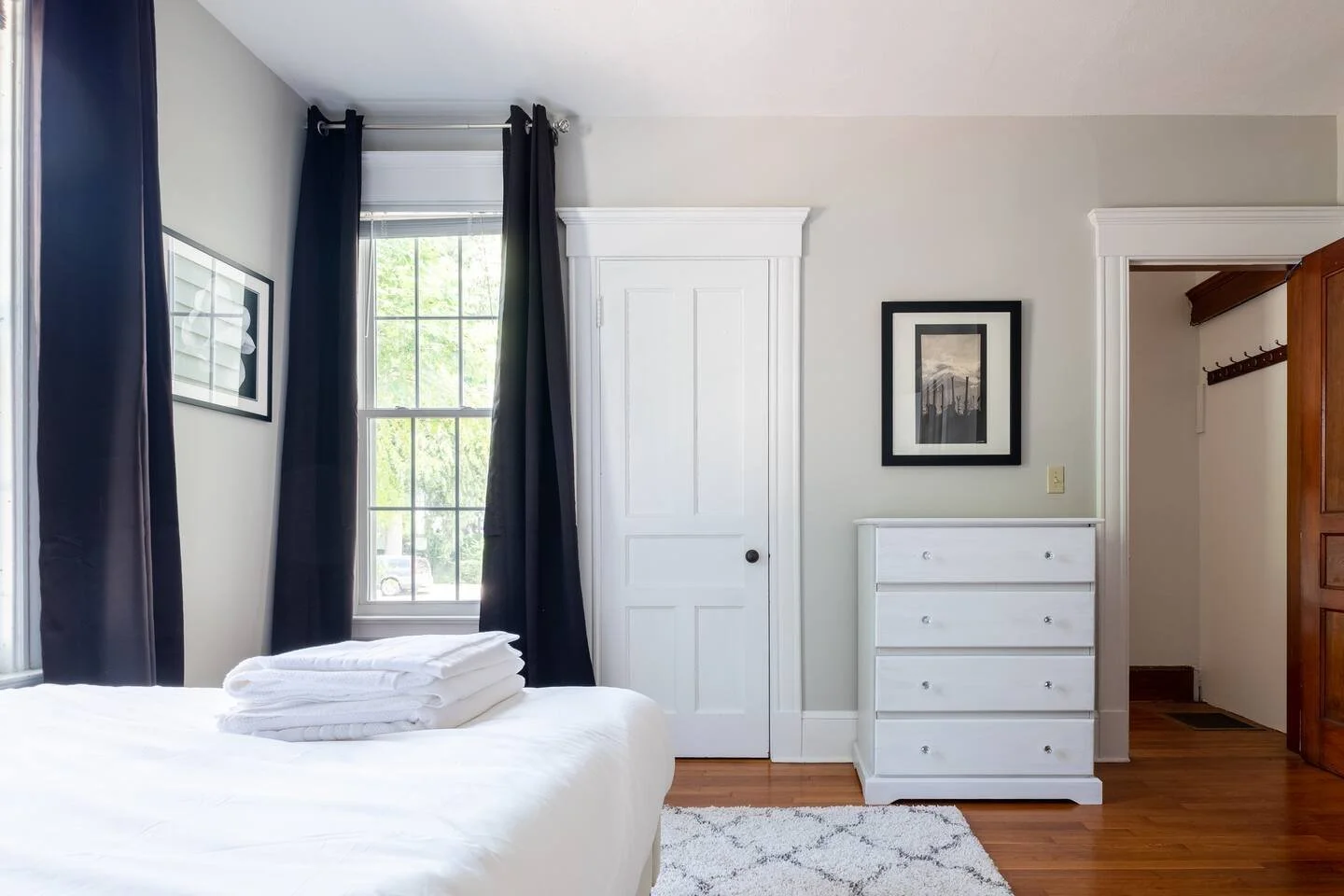 If the bedroom is on the smaller side, put a dresser inside the closet. This provides guests with drawers to use in addition to hanging space, without jamming up your space. Don’t forget to provide at least 5-10 nice quality hangers per bedroom!