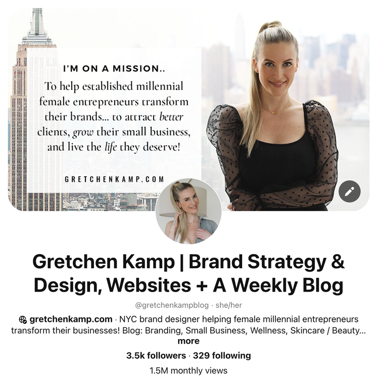 I will dive much deeper into how to create pins using Canva, including how to create 25 Fresh pins for 1 piece of content.. in my in-depth Pinterest course, which will be available later on this year. Make sure to sign up for my email list to be notified when the course becomes available. If you think this blog post is valuable, you haven’t seen anything yet! I will be giving away ALL my secrets for how I get 1.5 million Pinterest views every single month - which convert to tons of website traffic and high-quality, high-paying dream clients.